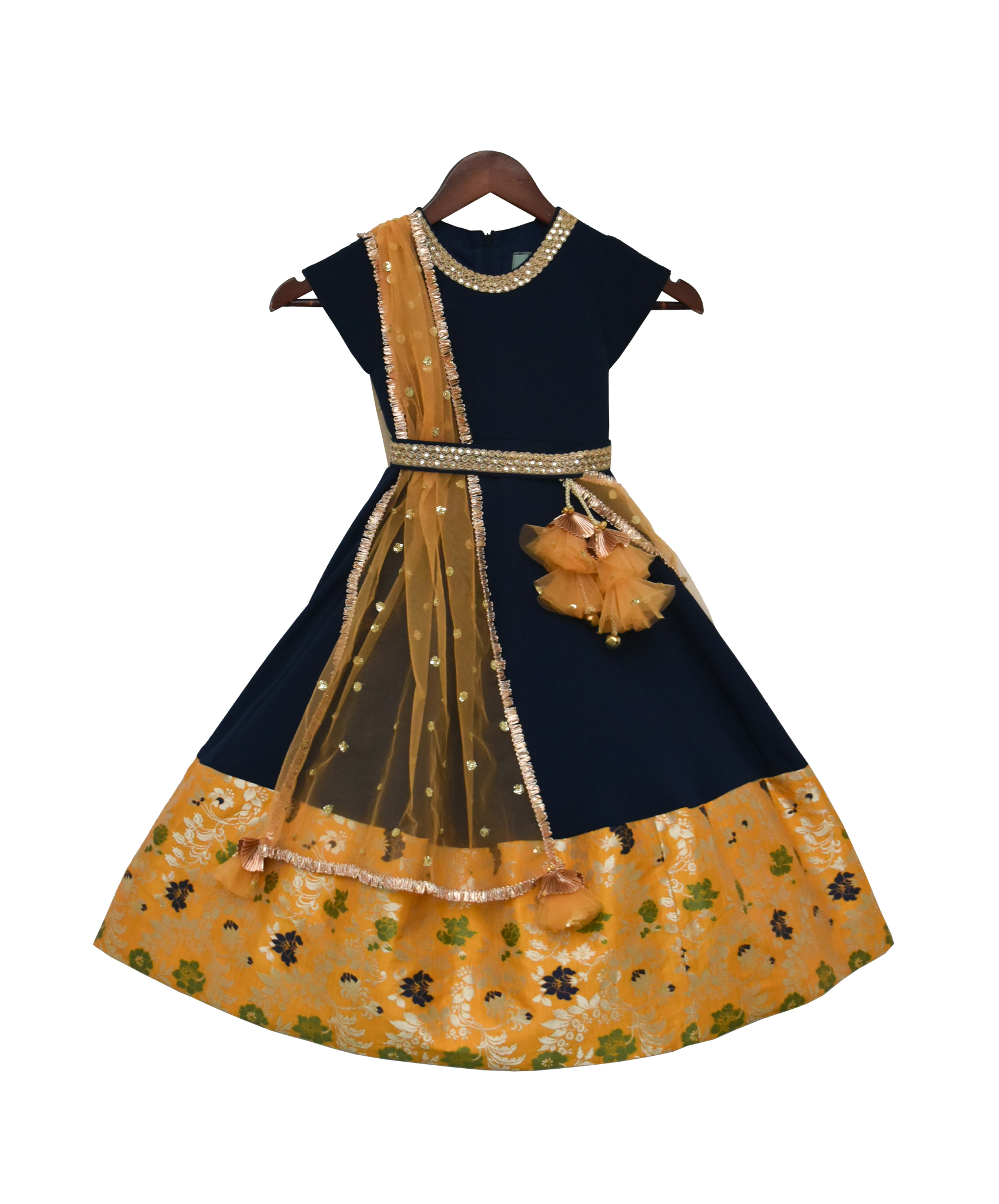 Kids Anarkali: Girls Dark Blue Georgette Anarkali | Perfect Panache