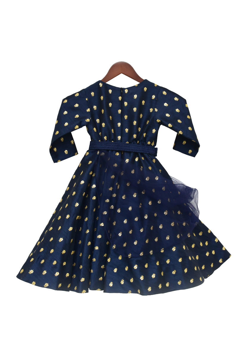 Girls Dark Blue Silk Boti Anarkali by Fayon Kids.