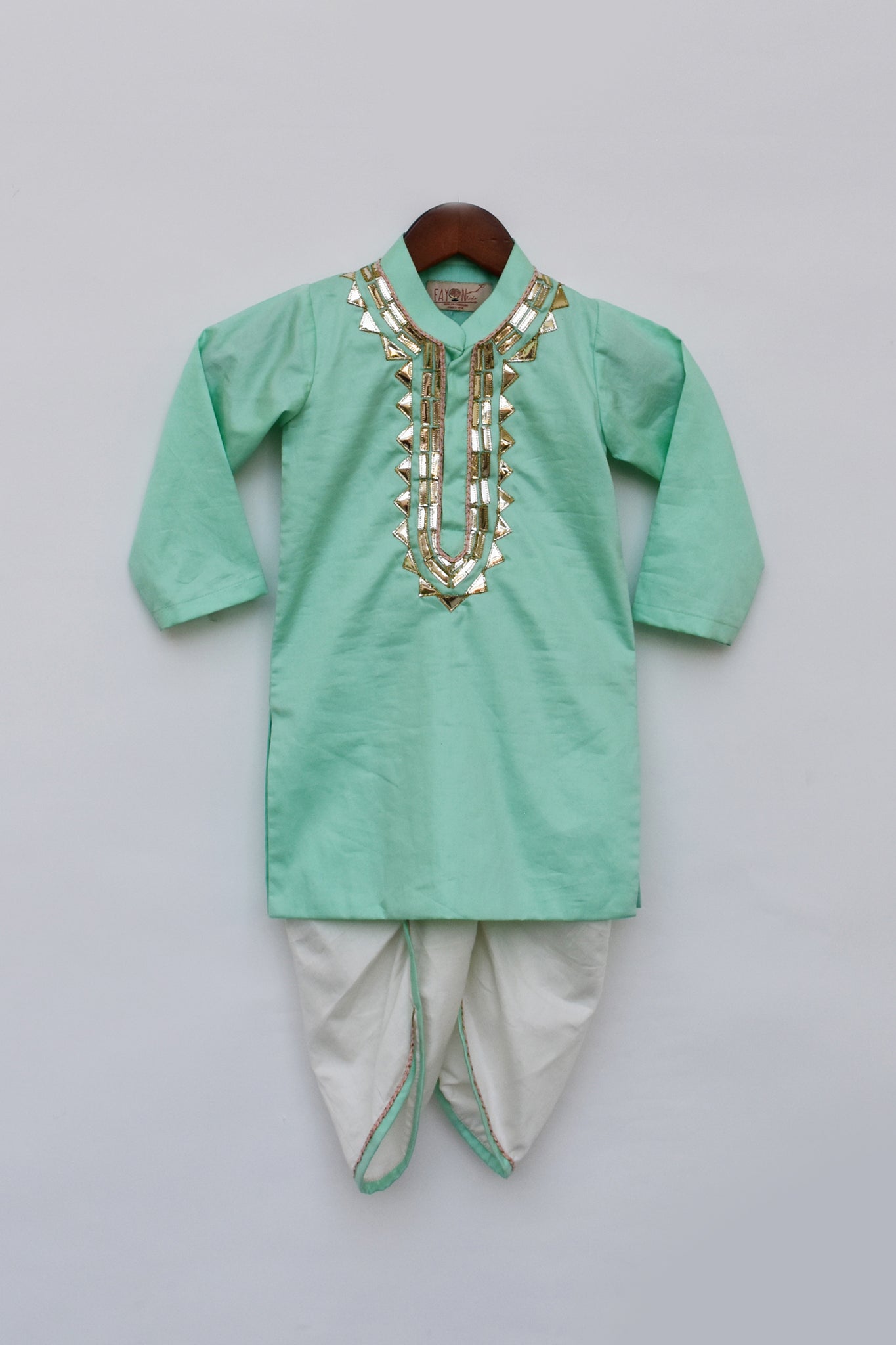 Boys Aqua Green Kurta With Dhoti by Fayon Kids.