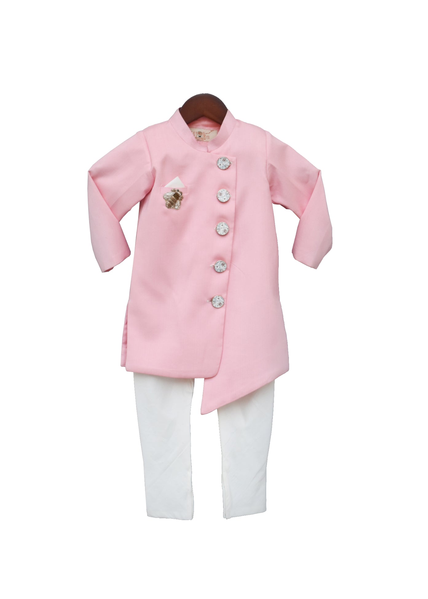 Boys Pink Ajkan With Off White Chudidar by Fayon Kids.