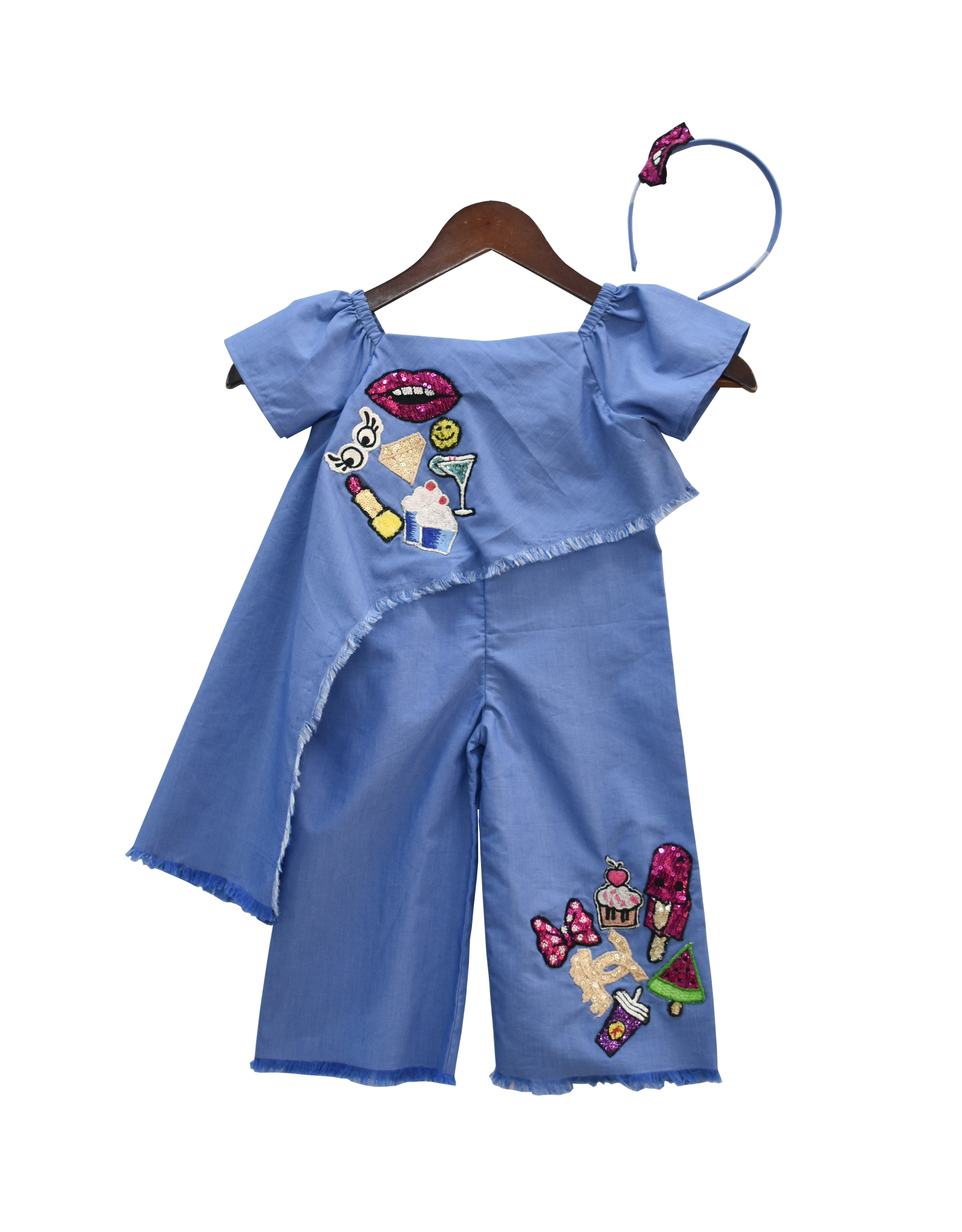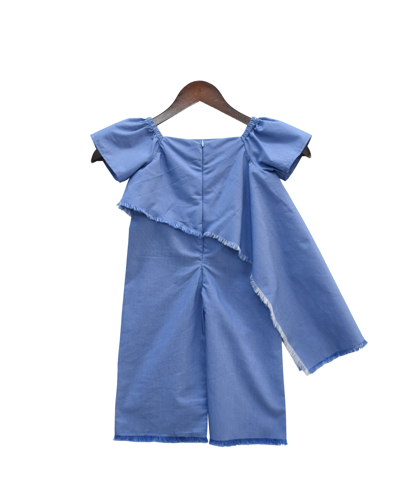 Girls Blue Denim Texture Jumpsuit by Fayon Kids.