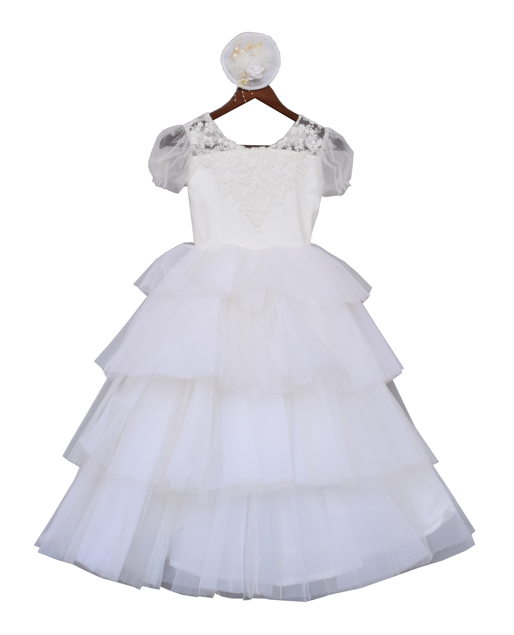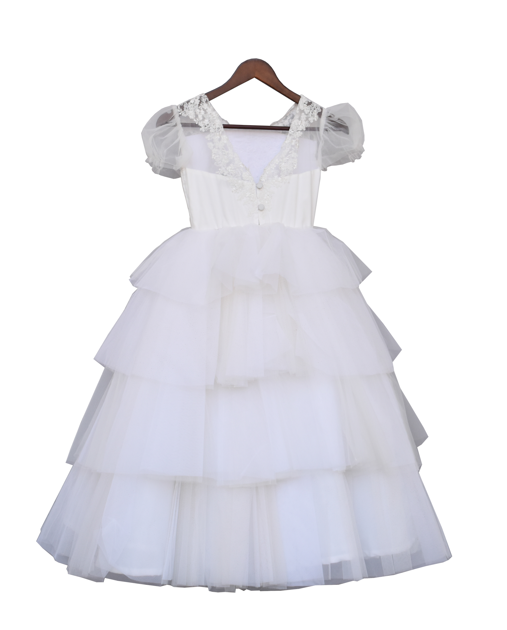 White Net Frill Gown by Fayon Kids.