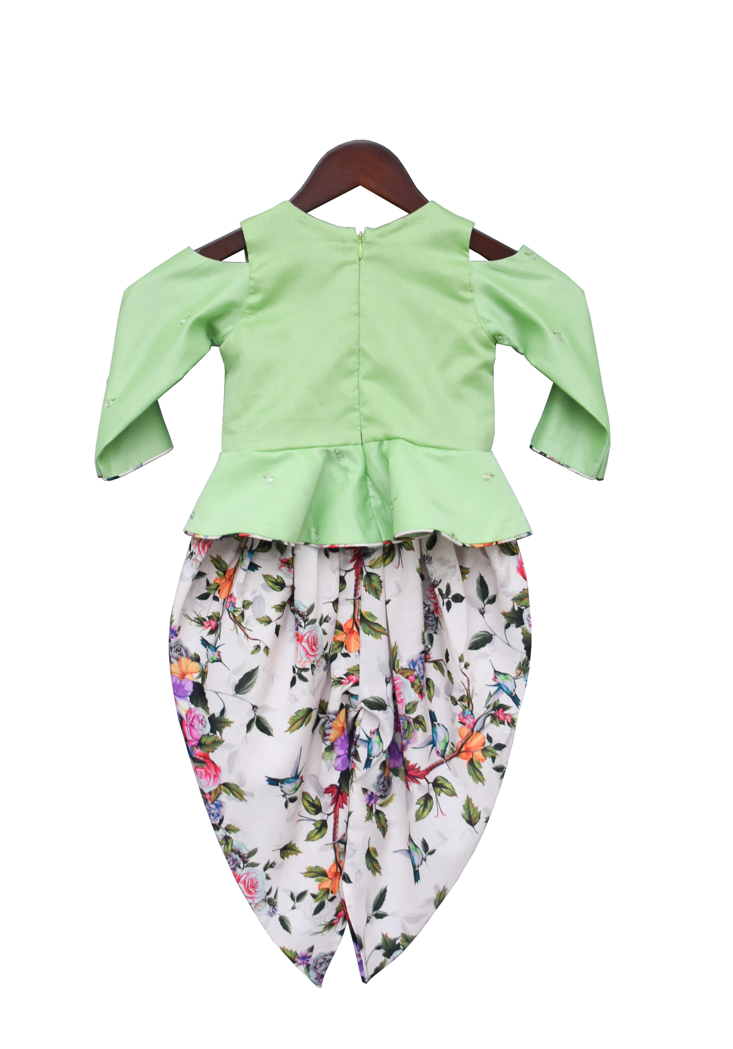 Girls Green Mirror Work Peplum With Printed Dhoti by Fayon Kids.